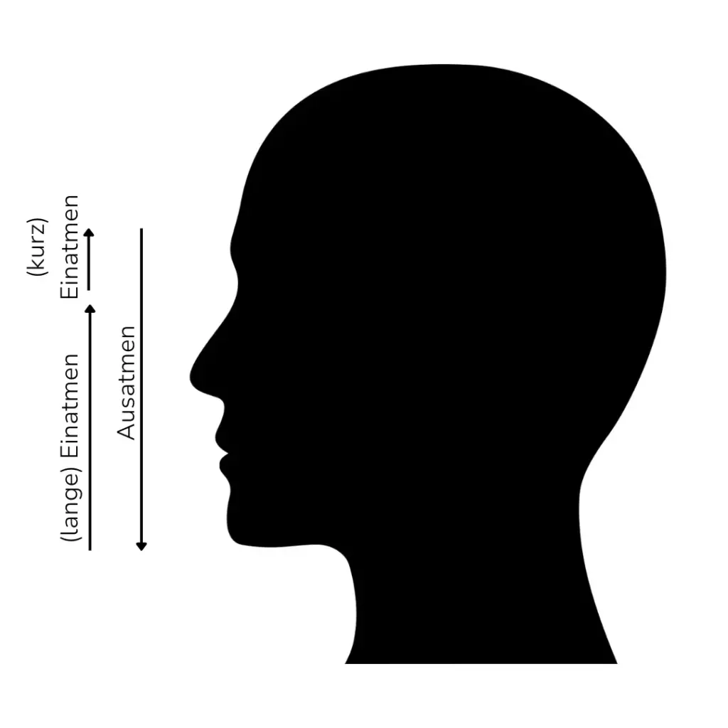 - Atme länger und tiefer ein als aus