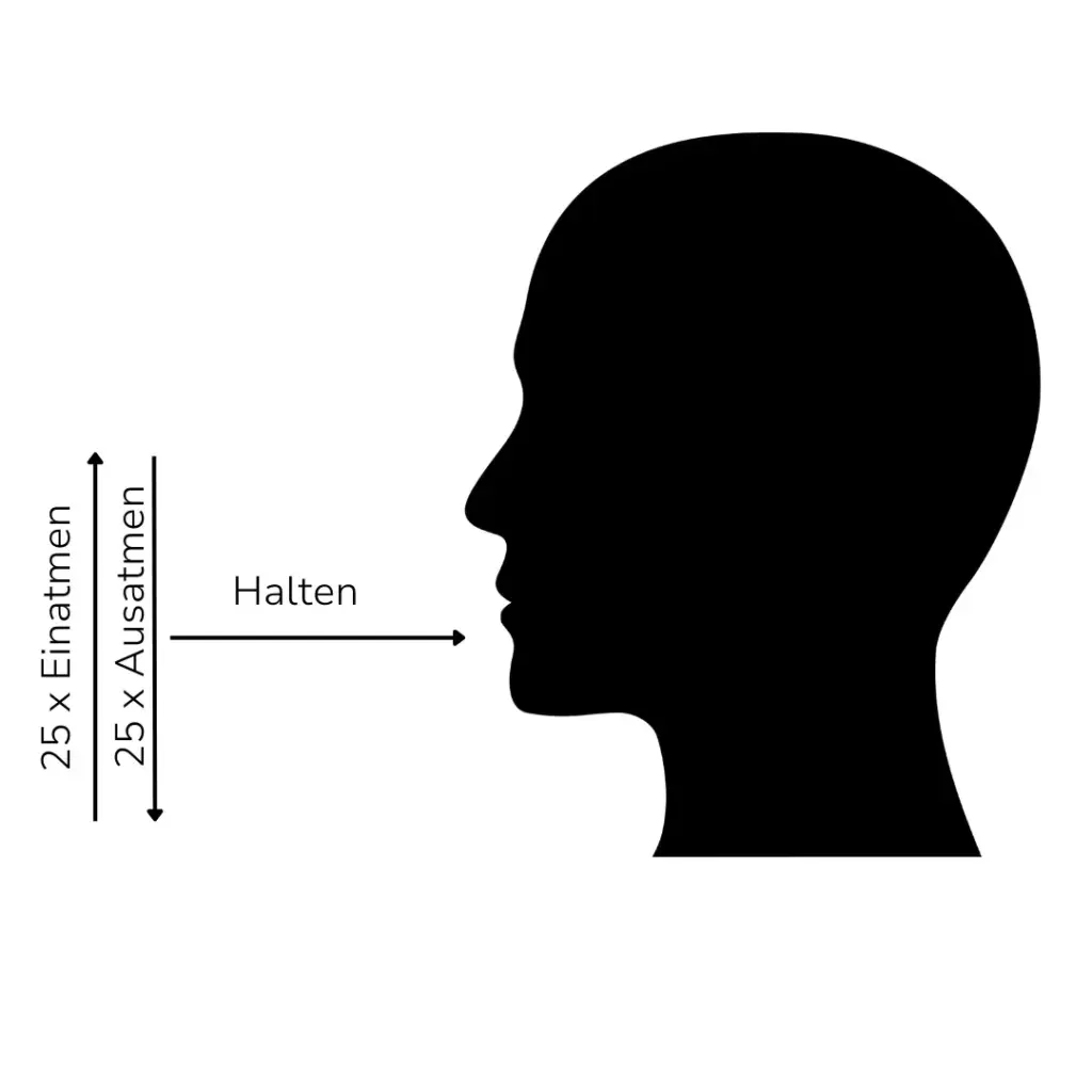 - Nach dem 25. Atemzug atme vollständig aus, sodass deine Lungen leer sind